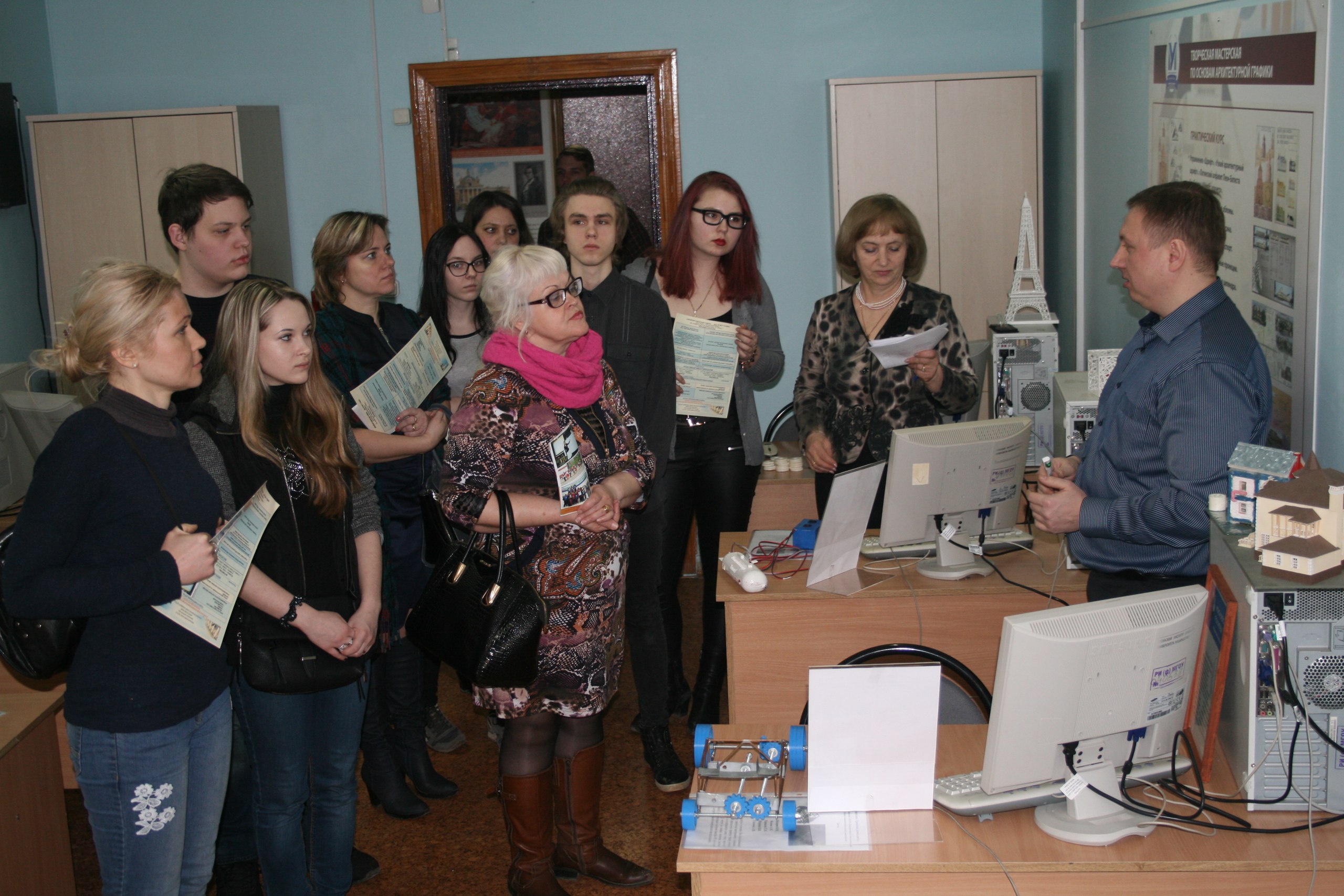 Начальник научно-исследовательского отдела Александр Платонов подтверждает нашу мысль о том, что «Институтские субботы» – это только часть той работы, которую проводит руководство «Политеха» по привлечению в ряды своих студентов наиболее одарённую молодёжь: «Для того чтобы найти талантливых ребят, мы создали Молодёжный инновационный центр, где у нас работают три творческих мастерских (помните сертификат Алины Арчаковой? – прим. авт.), куда ходят все желающие, начиная с шестиклассников. В первой мастерской работают три группы по 3D моделированию; во второй – работают две группы по робототехнике; в третьей – 3 большие группы по архитектурной графике. Также открыты инженерные классы в трёх школах и колледже».